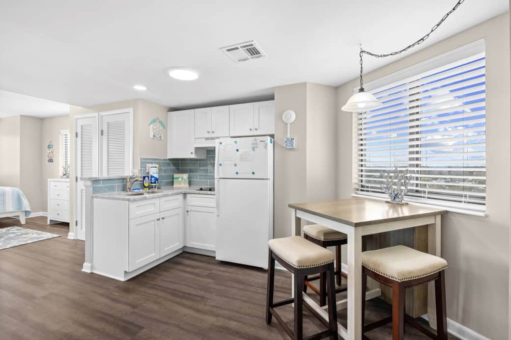 Included for our guests: fresh linens/towels, beach towels, complimentary soaps, make-up wipes, shampoo/conditioner, keurig coffee maker with complimentary regular/decaff pods, creamer, sugar, All in one microwave that also bakes/toasts/airfry, stove cook top, kitchenware/silverware, toilet paper, paper towels, cleaning supplies.
